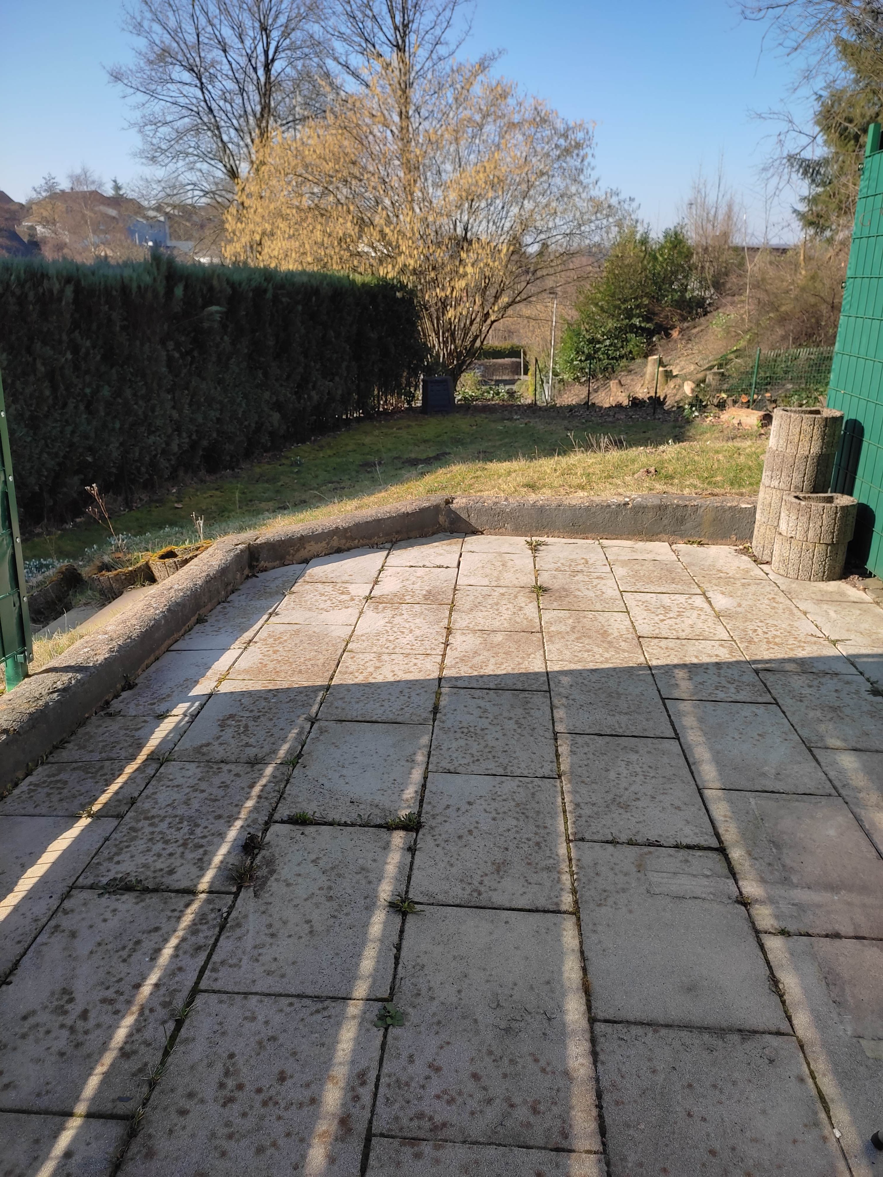 Der schöne Garten mit Terrasse lädt zum Entspannen im Freien ein. Ein Außenstellplatz für Ihr Fahrzeug befindet sich direkt am Haus.